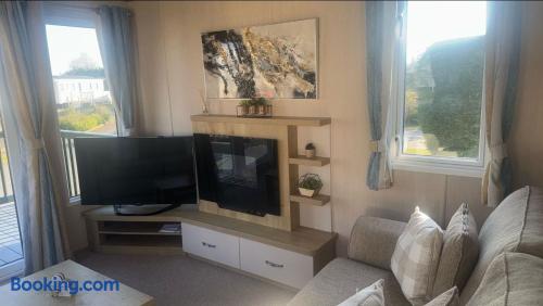 Escape to your modern 3-bed, 2-bath lakeside caravan. Enjoy peaceful views from your private decking and relax in a spacious, fully equipped space. The holiday park offers a swimming pool, climbing wall, arcade, plus on-site restaurants, bars, and entertainment. Ideal for a fun-filled and relaxing family getaway! Free parking for 2 cars next to the caravan, fully equipped kitchen and plenty of on site facilities to keep the whole family entertained. located very close to Skegness town/beach